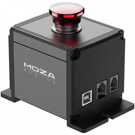 A ciò si aggiunge lultima opzione, in cui si collega l E-Stop Moza alla corrispondente porta E-Stop sulla wheelbase ma stavolta con un cavo RJ9 (4 pin), in questo caso, premendo linterruttore, la wheelbase viene completamente disattivata. Dopo aver rilasciato linterruttore è necessario inserire nuovamente la wheelbase. In alcuni giochi devi anche riavviare il gioco per ripristinare il force feedback.